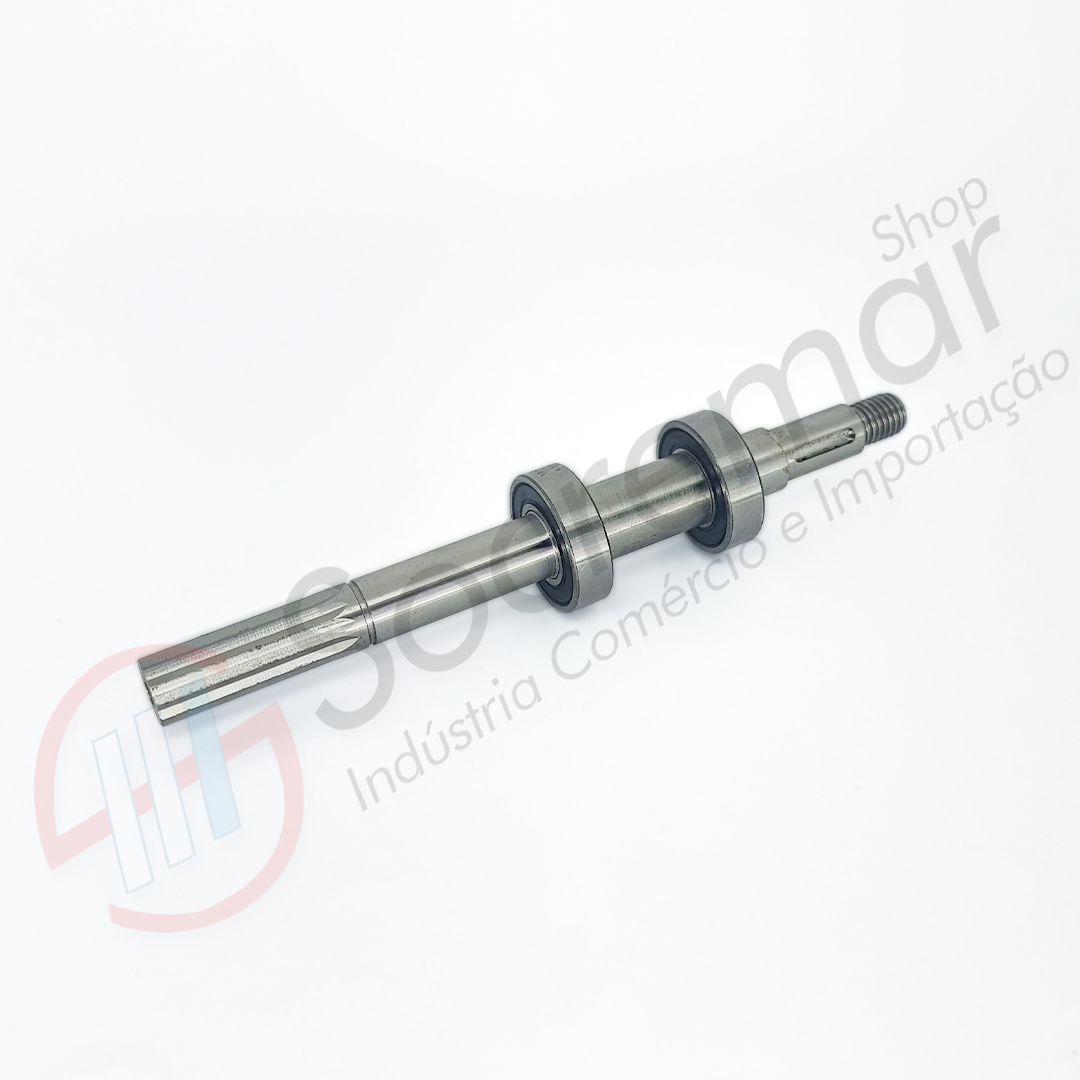EIXO FABRICADO COM ESPAÇADOR DOS ROLAMENTOS E ENGRENAGEM – FORNECIDO COM ROLAMENTOS, CHAVETA E PORCA DA ENGRENAGEM